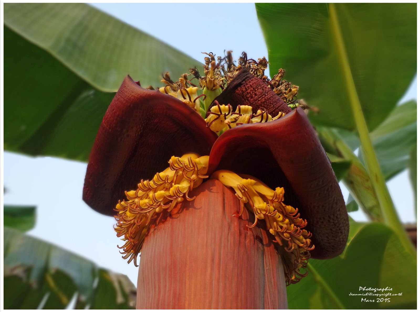 Eh oui, une fleur de bananier vue de près est absolument superbe...., nous avions acheté ce bananier en janvier de l'année précédente à Khon Kaen lors de la traditionnelle foire agricole, c'est un bananier pas très courant, il est nommé le bananier aux 100 régimes.....